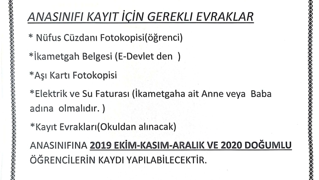 2025-2026 EĞİTİM ÖĞRETİM YILI ANASINIFI KAYIT DUYURUSU